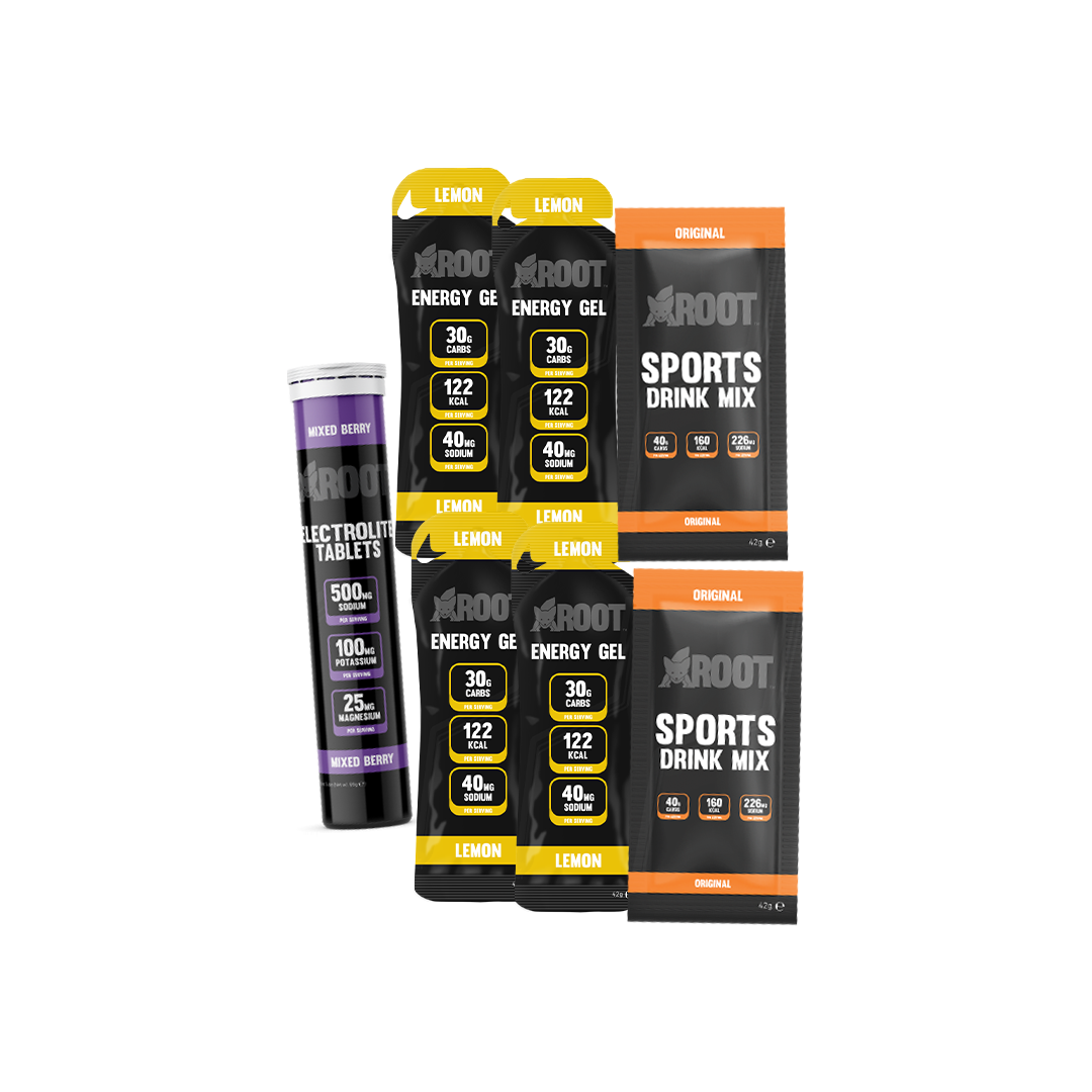 With Sports Drink Sachets, Electrolite Tablets, and your choice of Energy Gels or Gel Mix Sachets, this pack delivers essential fuel for race day. Soft Flasks and 500ml Bottles are optional for easy hydration, with quantities adjusted to your chosen distance.